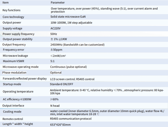 solid state microwave source 2450 Mhz parameters