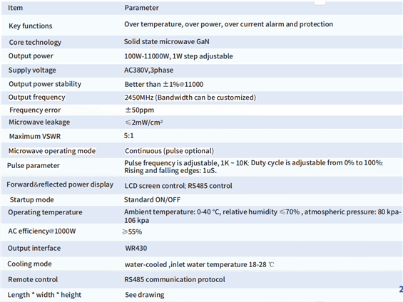 Solid state microwave source 10000W 2450MHz parameters